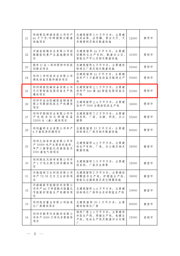 鄭州同鼎機械設(shè)備有限公司艾爾普智能包裝設(shè)備生產(chǎn)線建設(shè)項目進入重點建設(shè)項目名單。該項目總投資21000萬元,總用地面積33300㎡,總建筑面積>21000㎡,包含1#廠房、2#廠房、倉儲中心、綜合研發(fā)中心,建成投產(chǎn)后增加500個就業(yè)崗位,年生產(chǎn)AI智能包裝設(shè)備500套,每套平均售價30萬元。